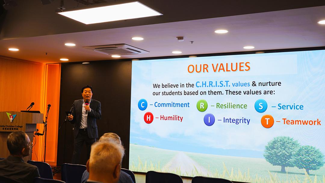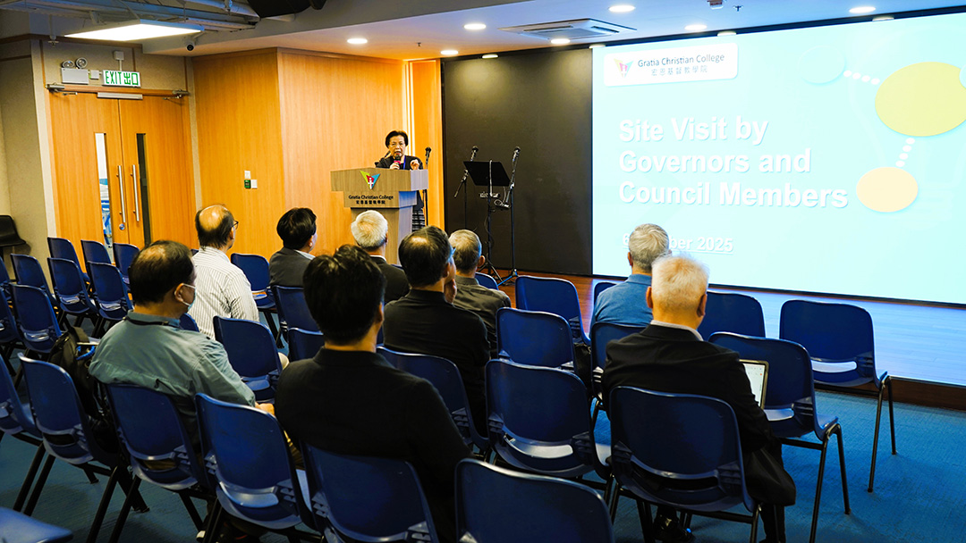 The guests attended a meeting conducted by Ms. AU Chui Wah, Elisa, Founding Vice President of Gratia Christian College and a briefing session on the “Overview of College Development Plan” delivered by Prof. CHUI Hong Sheung, President, followed by a campus tour and a sharing session with all the guests at the end of the tour.